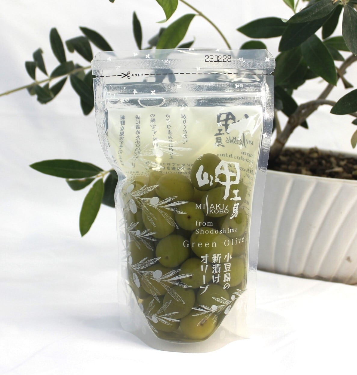 新鮮なオリーブ果実を塩漬けにした小豆島の味です。